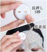 コントローラを起動し(長押し3秒)お好みの時間と強さに調整します。コントローラーの電極をマスクの装着部に取り付けると作動します